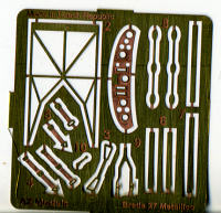 el brace, instrument panel (which has to be bent in place), rudder pedals, some sidewall bits, and pitot tube. The acetate is for the windscreen and instruments, though really, putting what are basically black blobs (no detail can be seen) behind a black panel makes one wonder why it is included.