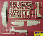 A one piece lower wing and two upper halves are the norm for this and it fits under the completed fuselage. Now for the options. You can have standard landing gear, the lower fairing removed, or later gear with balloon tires. Fuel tanks are provided and if you don't want to use them, you have to fill the placement holes. One also has an early or later rear canopy. The earlier one has much of the aft section closed off. Interestingly, one is shorter than the other, though the markings placement diagram shows them the same length. There is a telescopic gun sight, a gun camera (don't want to use it; fill the hole) and a pitot tube to round things off.