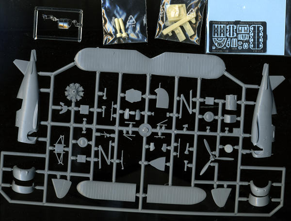 Typical of MPM/Special Hobby/Azur's line of smaller 1/72 kits, this one consists of a single sprue with resin and photo-etch parts in small bags. This particuilar kit sports an injected plastic canopy, something many modelers prefer over the vacuformed version.