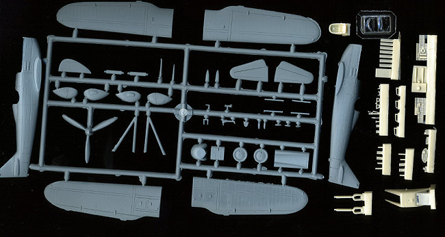 The kit consists of one grey sprue of injected plastic, a number of resin sprues and a pair of vacuformed windscreens. Detailing is engraved as one expects from all modern kits. Now I may have missed this with the last Pavla kit reviewed, but the surface detailing looks reminiscent of some all resin kits I've built in the past. By this I mean that the depth of the panel lines is not always consistent with some fading out near the end of a 'run' and others having some small amounts of 'stuff' in them. All these can be easily fixed by running a scriber over them, but I was somewhat baffled by seeing this. There is also a bit of flash on some parts like the prop blades and the ends of the wings and some of the struts, but really nothing unusu