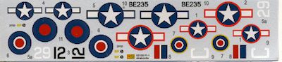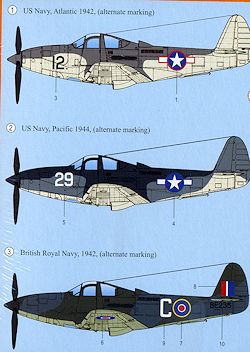 three whiffer schemes. One is the box art scheme for USN in the 'Atlantic' scheme. Another is in the tri-color scheme, and the third is a British FAA scheme. Those wishing to do the prototype will find it pretty easy to do. The prototype was in overall silver lacquer with yellow wings and the usual pre-war insignia with a red, white, and blue striped rudder. No other distinguishing markings. The decal sheet that is provided is very nicely printed and is quite thin. | CONCLUSIONS |