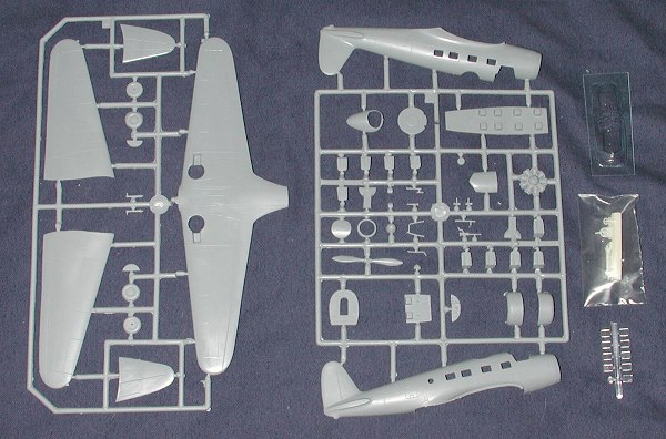 A very nicely molded kit that has very little in the way of non-styrene parts. Molding is typical of MPM kits being crisply done and well up to modern standards. The cockpit is basic with the control wheels done is resin. Six seats are provided for the cabin (one row is empty for the gunner) and the cabin windows are in clear, injected plastic. The 'canopy' was obviously too much for MPM's molders as that is supplied as vac plastic. The cockpit roof is provided as injected plastic in case you wish to use it.