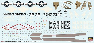 Markings are provided for two aircraft. Both aircraft are from VMFP-3. The box art aircraft is a nice green tailed version in the light gull grey and white scheme. The other is the specially painted retirement aircraft in gloss black when VMFP-3 was disestablished in 1993. It is hoped that this kit will engender some of the low-viz schemes carried by VMFP-3 during its long service life. Decals appear to be a bit more usable as the whites are actually closer to white than older sheets. The ones for the RF-4E worked very well so these should be no different.