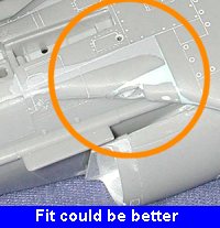 As usual for me, I needed some filler on the fuselage halves, more of it in the front than any other place. The avionics hump had been glued together and left to dry. Make sure you open up the required holes for the version you are doing. It was glued in place and any