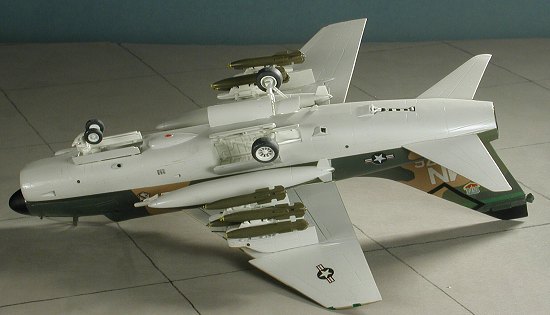 As you can imagine, I left off the pylons, ordnance, gear doors, wheels, pitot tubes and other 'fussy' stuff until after all the painting and decaling had been completed. I used super glue for the gear doors and other things that might break off and good thing too, as much of that was broken off during the several moves that this kit has made since inception. Last bits were the usual paint touch-ups and replacing stuff that I knocked off handling the kit.