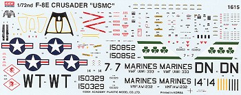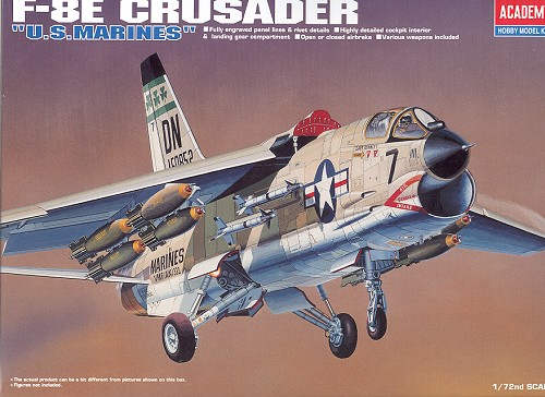 The F-8E, which is the subject of this kit, is actually the same as the old F8U-2N. That meant it had better navigation systems that allowed it to operate in all types of weather, hence the (AW) in the unit designator of Marine squadrons that flew this version. Some of the distinguishing features of the F-8E over the earlier variants are the afterburner coolant scoops, the ventral fins, and the 'humped' area over the wing. It also carried wing pylons that enabled the aircraft to haul ordnance. Many were upgraded to J standards. The F-8 finally left service when the F-14 started to enter fleet squadrons and left lots of extra Phantoms around for the reserves.
