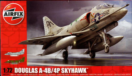 Airfix is continuing to replace kits in its old catalogue with new tool kits. In this case their ancient series 1 A-4A is being replaced by a series 3 A-4B. Now this is not the only Injected A-4B as Fujimi did a very nice one in the late 1980s that is probably superior in detail to this one, but not by much. A close look at the kit shows that there is a good possibility of later models of this aircraft as the wing has holes started in the wing for the outer pylons of later versions of the Skyhawk. All of the really common bits such as landing gear and cockpit bits are on the same sprue as the wings.
