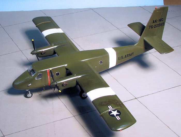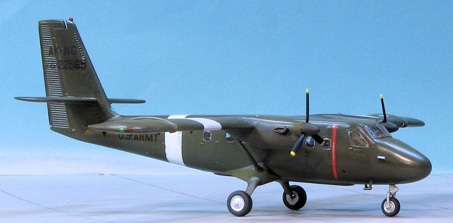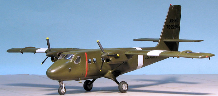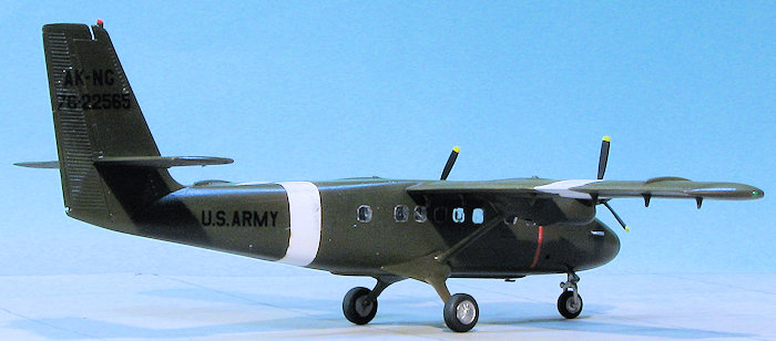 I used Iliad Decals sheet 72015 for the Twin Otter. There are not a ton of markings on the Alaska NG option I chose and typical of many Army types, there are no fuselage insignia. The decals are very thin so you have to take special care not to tear or have them fold. This means lots of water when placing them. Their thinness also means that the white of the insignia is not all that opaque with the background color showing through a bit. It would have been nice to have the white on these double printed. Once the markings were on, I gave the airframe a coat of semi-gloss as these aircraft were painted in gloss OD.