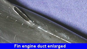 After those were done and smoothed out, the engine cooling intake at the base of the fin was enlarged (this area was partially blocked off when the two cooling scoops were added). Then the strike camera housing was cut off the nose section as it was a later modification. The nose cone was glued in place and this assembly set aside to dry. Later, some more filling and sanding was done to get things as smooth as possible.