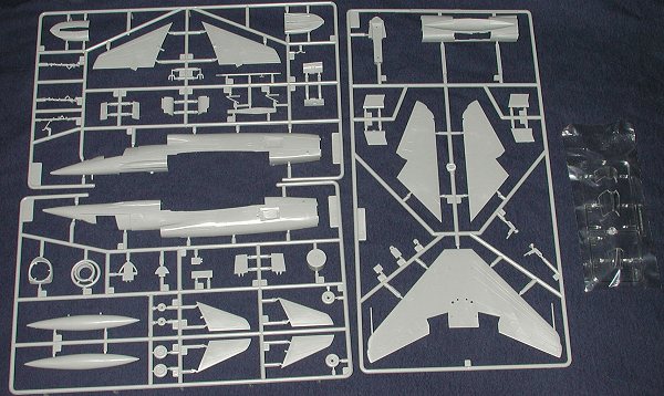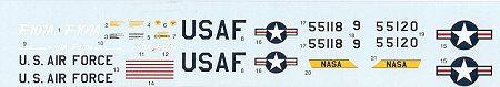 The instructions are like most of the Trumpeter kits I've seen and should do well. Colors needed are provided in generic terms and no references to FS standards or paint lines are given. The decals are very crisply printed and glossy. I'm not sure how well they'll work, but given the slim chances of aftermarket, I can only hope they will do well. There are markings for the three prototypes but only two of them are shown on the decal placement guild. They were basically marked the same and of course, the builder will have to mask and paint the gloss red areas. There are NASA tail bands on the sheet, but nothing in the markings guide about them at all.