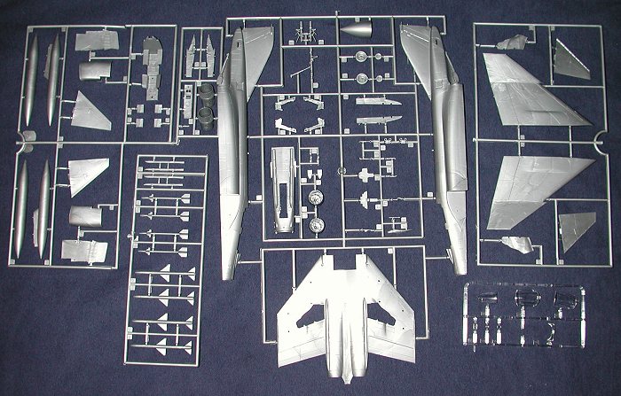 You can display the landing gear either up or down as you wish.The gear are wll done, though the forward nose gear door is not accurate for aUSN aircraft. If doing a C or J, you need to put the appropriate sensor underthe nose cone. The cockpit canopy can be displayed either open or closed.Finally, you get a full weapons load of four Sidewinders and four Sparrows. BothUSAF and USN styles of Sidewinder pylon are offered. There are also wing droptanks, but not one for the centerline.