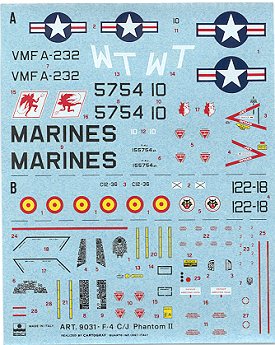 Same with aftermarket stuff. Though now you can find all sortsof resin interiors in 1/48, there has yet to be a decent one done in 1/72.However, thanks to the non-production and scarcity of those hundreds (seemingly)of Microscale/Superscale decal sheets, some of the newer companies such asYellow Hammer, Eagle Strike, CAM, and Aeromaster have rediscovered the F-4 andhave been issuing sheets left and right. Still, most of these have been in 1/48,though some of them have had the decency to reissue them in 1/72.