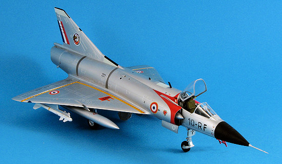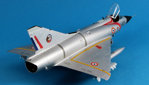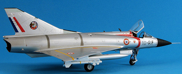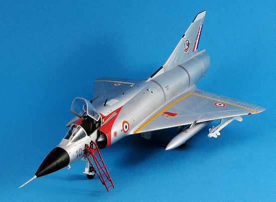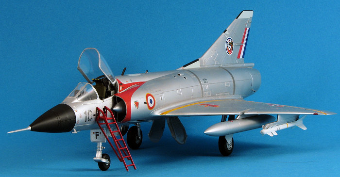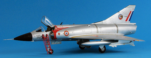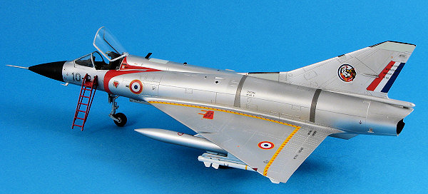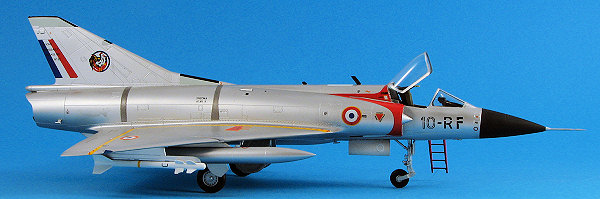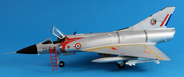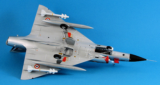 I found the fit of the forward landing light to be less than ideal. Despite trimming it, I just couldn't get it to fit all the way in so rather than risk damage, I left it as it was. The high speed fuel tanks were literally a snap fit and needed no glue. The attachment holes on the Matra Missiles were not only oversize, but out of alignment. I cured the latter situation by removing the aft mounting pin on the pylon. As I'd forgotten to drill out the holes for the centerline missile pylon, that was left off. The boarding ladder was attached using clear paint and that was it.