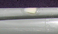 The kit offers both Firestreak and Redtop missiles (the Firestreaks being molded in clear).Trumpeter's instructions also show the correct optional bits for the F.2A and F.6 aside from the missiles. As on every small scale Lightning kit I've built, the nose wheel and leg are a single construct. The main gear appear good and sturdy, but the Lightning is a 'spindly geared' aircraft. I did find that most of the inside of the gear doors and the speed brakes had ejector pin marks that you'll have to remove if you want this to be a contest plane. There is one new sprue included with this kit and that is shown to the left. It replaces the small 'fin sprue' shown in the main parts layout, otherwise both kits are the same.