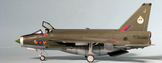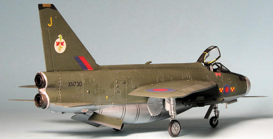 The F.2A and F.6 are upgrades of the standard F.1A/F2 variant. The major differences are the enlarged belly tank that with the F.6 variant, includes the cannon armament, removing that from the nose where it was in earlier versions, and a larger, square-tipped fin. The F.2A still kept the upper nose guns and did not normally have them in the belly pack. Also added to this version were the ability to carry over-wing fuel tanks. These aircraft operated the Firestreak missiles, but could replace that option with additional guns in the forward tank section as was installed on the F.6, making it a four gun, no missile interceptor. The F.6 only had the guns in the forward tank and carried Red Top missiles. The F.2As basically served in RAF Germany with #19 and #92 squadrons.