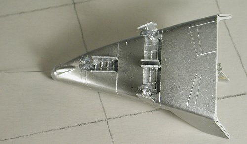 In order to get this kit finished without too much additional fuss (as I'd taken way too long on it already), I decided for the early scheme of bare metal instead of the later one with the cool white areas painted on it as depicted in the kit. Photos showed me that the early version had the rear painted a light grey, so I used Gloss Light Gull Grey for this. Mostly because I already had some mixed up and ready to go! It seems to match fairly well.