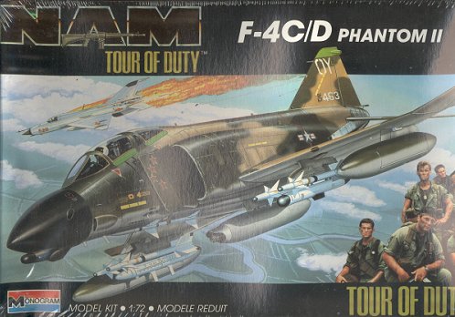 Monogram's excellent F-4C/D kit is basically a reduced in size version of their super 1/48 kits. While, like most Monogram kits, there are some fit problems, this kit also has superb detail. While released in several different boxings, the basic kit and decals have been the same. Molded in olive drab plastic, it has raised panel lines, excellent cockpit detailing, a canopy that can be kitted open or closed, crew figures, full weapons load as well as ECM and gun pods, and speed brakes/flaps that can be displayed in the lowered position. Typical of Monogram kits of that time, the decal sheet is terrible as it is too glossy, often out of register, and doesn't stick at all well. Fortunately, the F-4 is an aircraft that is well represented by aftermarket decals.