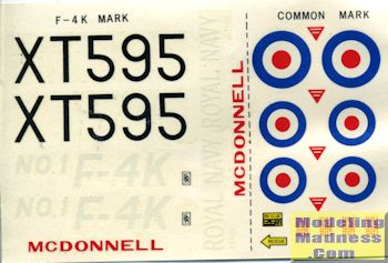 Instructions are rather basic and no painting information is provided in the instructions with a note stating it should be painted like the box art plane. This means, of course, that it should have red bombs and be painted light gull grey over white, a standard RAF scheme. It also means that the cockpit, wheel wells and landing gear are to be dark blue. Decals are provided for the prototype YF-4K in dark green/brown over white, which were apparently the standard Royal Navy colors. That's what the instructions say. The decals are actually well done, though I suspect they are no longer viable.