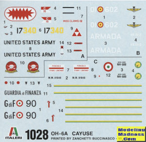 Instructions are well done with three main assembly steps. The differences between the markings options are shown. THe main one is the box art helo with the shark mouth that seems to be a staple of this type. A Spanish Navy version in overall gloss dark blue is provides as is a colorful green and yellow Italian variant with the Customs Police. A nice touch is the cheat line between the green and yellow bits. The decal sheet is nicely printed and since this is a recent boxing, looks to be quite usable.