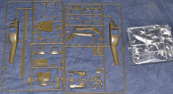 This one seems as if it is an older kit. The detail is raised with a few appropriate rivets. The molding is very nicely done with no flash, sink areas and only a few ejector pin marks on rotor head components and the landing skids. It has a well detailed cockpit with both a cyclic and collective for both sides. Separate rudder pedals too. Seats are OK with some rather weak seat belts, but good enough for an out of the box kit.