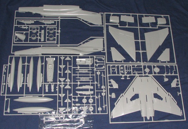 The molds have held up well over the years. There are some injector pin markings inside intakes, gear doors, landing gear legs, missile bodies, and a few other spots that will need removed. I saw no sink areas during the brief inspection of the parts. Flash is nearly non-existent on my kit as well.