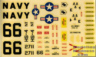 Instructions are fairly well done providing generic color information (white, grey, red, etc.). The decals themselves are beyond salvage, and will undoubtedly crack into fragments when put into water, if they come off the backing paper at all. Fortunately, Starfighter Decals provides an excellent sheet for this exact helo and their markings are vastly superior to any sheet from the dark ages.