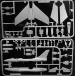 The cockpit is fairly well appointed with detailing on the inside of the fuselage halves. Two nicely done, but basic bang seats are provided and decals are used for instrument faces. Intakes are properly blanked off and the kit has separate wheel wells that will need installed before gluing the fuselage halves together. The instructions give no indication of weight being needed.