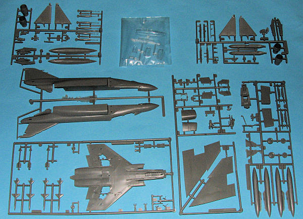 As many of you know, Accurate Miniatures has been doing a lot of reboxing over the last several years with kits from various sources. This one is a 2009 release and is a reboxing of the venerable Monogram 1/72 F-4J. Despite the age of the molds, it is in pretty good shape. There is some flash and that is to be expected, but nothing major. The kit includes not only the usual F-4J sprues (including the proper rear cockpit sidewalls), but the one for the F-4C/D. The only reason I can see to include that sprue is for two tiny rear view mirrors. At least you'll have some spares to add to what is probably an overwhelming collection of bits.
