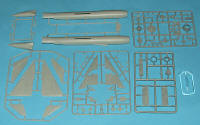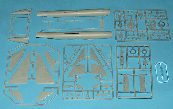 Not surprisingly, there are several bits and pieces that are not used. No weapons are included as the plane had neither weapons nor pylons on which to put them. There is an adequate cockpit with a nice bang seat and detail on the sidewalls of the tub, which is built up of several pieces. Fitting the nose section and intakes will probably be the greatest challenge of the built. This is one area where the modeler will need to do test fitting to be sure all is properly aligned. There is no long intake trunking, but the blanking plate for the exhaust should prevent any see-thorough situation. The kit also has adequate wheel well detail, though it seems to me that the main gear wells are too shallow. Most of us won't really care about that, but I thought I'd mention it.