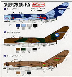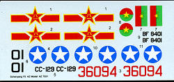 Instructions are well drawn with a nice four view included to show where everything fits. Color info is keyed to Humbrol paints. There are markings for three planes in the box. One is a Chinese version in light blue-grey and dark blue over light grey, a Somali version in dark green and earth over light grey, and the box art plane from Burkino-Faso in sand over light grey. The decals are very nicely done and I'm sure are very thin as well.