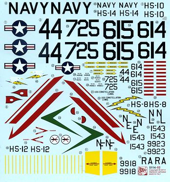 Markings are provided for four aircraft all in the white over light gull grey scheme that is typical for ASW aircraft of the period. YHou have the box art aircraft from HS-10 at NAS North Island in the 80's. This was the training squadron. Other options are HS-8 on the USS Kitty Hawk in the 1960s, HS-14 on the USS Ronald Reagan in 1985 and HS-12 aboard the USS Midway in the 1980s. The decals are printed by Cartograf and are very nicely done.
