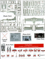 What Encore has done is to provide pretty much all the aftermarket you could desire and placed it into one boxing. This includes a superb cockpit set in resin that is quite complete with new resin seats, instrument panel and the usual bits and pieces one gets in a resin cockpit. There are also new resin wheels, a resin refueling probe, and some new under wing stores that include some slick bombs and rocket pods. I particularly liked that Encore had segregated the resin parts in their own cardboard protective cover.