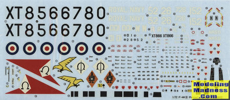 This kit is the British F-4K so it would be appropriate to have a bit of background on that version. The United Kingdom bought versions based on the U.S. Navy's F-4J for use with the Royal Air Force and the Royal Navy's Fleet Air Arm. The main differences were the use of the British Rolls-Royce Spey engines and of British-made avionics. The RN and RAF versions were given the designation F-4K and F-4M respectively, and entered service with the British military aircraft designations Phantom FG.1 (fighter/ground attack) and Phantom FGR.2 (fighter/ground attack/reconnaissance). Initially, the FGR.2 was used in the ground attack and reconnaissance role, primarily with RAF Germany, while 43 Squadron was formed in the air defence role using the FG.1s that had been intended for the Fleet Air Arm for use aboard HMS Eagle. The superiority of the Phantom over the English Electric Lightning in terms of both range and weapon load, combined with the successful introduction of the SEPECAT Jaguar, meant that, during the mid-1970s, most of the ground attack Phantoms in Germany were redeployed to the UK to replace air defence Lightning squadrons. A second RAF squadron, 111 Squadron, was formed on the FG.1 in 1979 after the disbandment of 892 NAS.