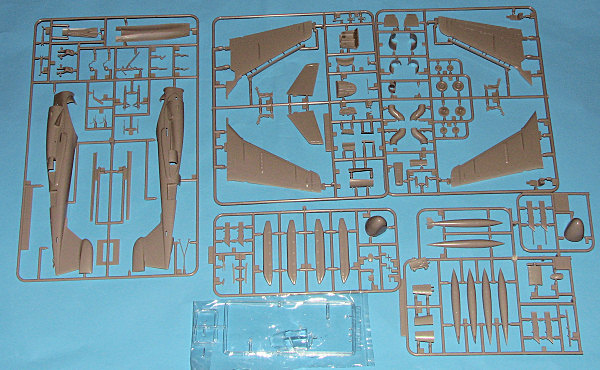 This is another of Fujimi's superb jet kits from the mid-1980s and this time it is part of their A-6 Intruder family. Once past the stunning box artwork, one finds several plastic bags with superbly molded engraved parts. The detailing is crisp and clear, just what one expects from Fujimi. As one would expect, the majority of this kit is based on their bomber Intruder with those items peculiar to the electronic Intruder on a separate sprue. The fuselage, however, is in with the standard sprue along with landing gear and other bits.