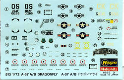 The kit does provided the major differences between the A-37A and A-37B, though it will mean a hole or two will need opened and some areas cut away or filled, but this is all shown in the instructions. Speaking of which, these are pretty typical of what was done in 1988, the date in the instruction sheet. Granted, the kit is from way before then as I built one of these in the late 1970s. Gunze and FS 595 paint references are provided. The two markings options are the box art plane, one of the last USAF OA-37B units, the 19th TASS/51 TFW version in overall FS 36118. This has to be from the date of the instructions as USAF units were all renamed in 1991/92. The other option is one from the original boxing of this kit and is a Vietnam era A-37A from the 604 SOS/3 TFW in the standard SEA paint scheme. Decals are typical old style Hasegawa with off-white white and they are a tad thick. One will need very hot water when applying them.