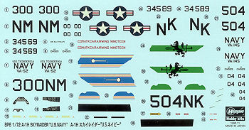 Instructions are what one would expect after all these years from Hasegawa. They include Gunze and some FS 595 color references. Markings are for two planes. One is the CAG bird from VA-52 as shown on the box art and the other is from VA-145 in predominately green markings. Both are in the Light Gull Grey and White scheme. The decals are nicely printed and should work well as long as you keep them away from setting solutions.