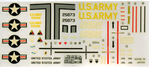 Instructions are quite basic with only generic color information given in the decal and painting guide. These decals are somewhat yellowed, but should still work as I've had 30+ year old Hasegawa decals still prove viable. There is an instrument panel decal provided for you to put on the large blank area facing the 'crew' and wing walk decals are also given. The decals are thicker than we are now used to and the whites are ivory with the reds too bright. The lone option is shown on the box art in gloss Olive Drab.