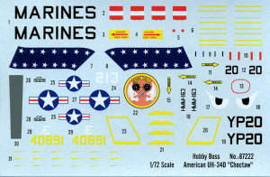 Instructions are adequate with well done assembly drawings, but without any painting information for the cockpit or cabin. Hobby Boss really needs to address this as it is quite unsatisfactory. The markings and decal instructions are not color as in other kits, but provide Gunze paint references for the exterior. The box art aircraft is with HMM-161 and is in overall Field Green. The other option is a South Vietnamese plane in Olive Drab. The decal sheet is well printed and provides tail rotor markings. I assume one paints the main rotor tips yellow and on the second markings option, there is a large yellow panel on the roof that will need painted. Decals are well printed though the US insignia has borders that are far too thin so one will need aftermarket for these. | CONCLUSIONS |