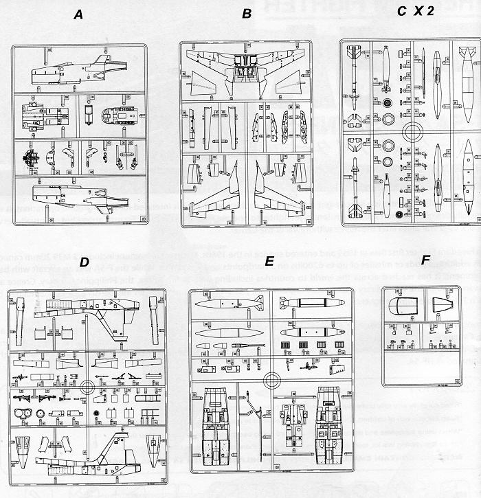 The instructions are a whopping 34 pages, though much of that is for the 16 markings options and for the different construction sequences for the standard and CF/NF-5 versions. There are three US options; two in silver portraying a prototype and one with the 4441 CCTS. A third one is listed as being ADC Grey with daglo patches flown at Kelly AFB while awaiting delivery to Greece. For Canada there are three options. One is in the final 'glop' scheme in 1995 that is stored with the Canadian Warplane Heritage. Then there is a 434 Squadron aggressor that is displayed at the Canadian Aviation and Space Museum, also in 'glop'. The last one is a 434 Squadron plane in the green/grey wrap scheme of 1988. Moving on to the Netherlands we have two options, both with 315 Squadron One in the original NATO scheme and one with the latter greys. Then we have a pair of Norwegian aircraft in silver. One with 336 Squadrons as the Jokers aerobatic team and another with 334 squadron. Both of these options have multiple serial/code choices. Then we