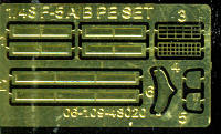 For the wings you can put Sidewinders or tip tanks on the end. I am not sure if the tanks are properly angled down or not as it is difficult to tell without building the kit. Under the wings are four pylons for Mk.82 slick bombs, rocket pods or drop tanks. Two different centerline tanks are also provided. Another inclusion is a small photo etch fret for the slime lights (when required) and vents.