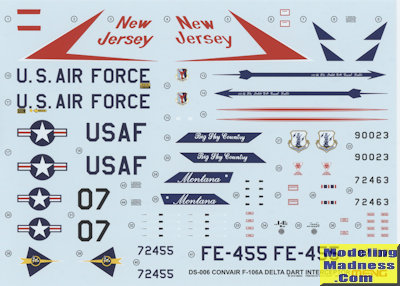 Instructions are very nicely done with color information using Vallejo paints. Decals are for three planes. All are in overall ADC Grey with black noses and anti-glare panels. One is an older plane from the 539 FIS at McGuire AFB in 1960. The other two are ANG planes, both from units that were among the last to fly the plane. One is from the 186 FIS, Montana ANG and the other from the 119 FIS, New Jersey ANG. Note that the Montana planes experimented with the blue-green cockpit interior color used by the Soviets in their MiGs. Decals are nicely printed with full stencils. Below are images of the two ANG options.