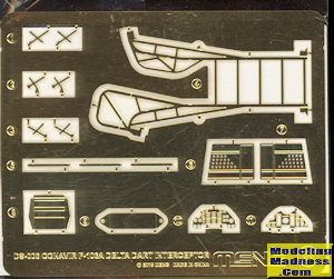You would expect the kit to have a lot of detail and to be modular and it is in both accounts. First off, it is molded in a rather dark grey plastic. The molding is excellent and there should be no complaints about the external detailing. Meng has provided bits to do either an early or later version of the F-106A. It starts in the cockpit with either a Convair bang seat or the later Weber zero-zero seat. The instrument panel can be either the older round dial or the strip style instruments. A p.e. panel is provided for both options. Convair's dual grip control column is also included. Rudder pedals are molded onto the instrument panel piece. This all fits into a tub that sits atop the nose gear well once the well walls have been attached.