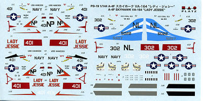 The instructions are in Japanese, but this isn't a problem as the construction illustrations are quite clear and easy to follow. There are markings for three aircraft, all of them in Light Gull Grey over white. Two of them are the famous 'Lady Jessie' aircraft with VA-164; one from 1969 and the other from 1972, both time while on the USS Hancock. The markings are similar, but not the same. The third option is for a VA-153 'Blue Tailed Flies' aircraft from the 1969 time period while on the USS Coral Sea. The colorful sheet is superbly printed by Cartograf so you know they are of the highest quality.