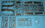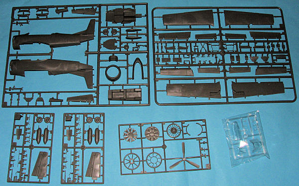 Both the flaps and the ailerons are separate items. It was normal for the flaps to be down when the aircraft was on the ground. I also noticed that the little actuating rods for the three cowl flaps were part of the kit. The speed brake can also be posed down. This was handy for maintenance as the UHF radio was in the open speedbrake well. Gear wells are nicely done though, like the speedbrake well, they are fictitious and basic. The gear is nicely detailed and the nose gear is quite scale, which means it may be easily broken. This is especially true once sufficient nose weight is installed, as a great deal will be needed. Finally, the canopy sections are separate with the glass separate from the frame for the rear piece.