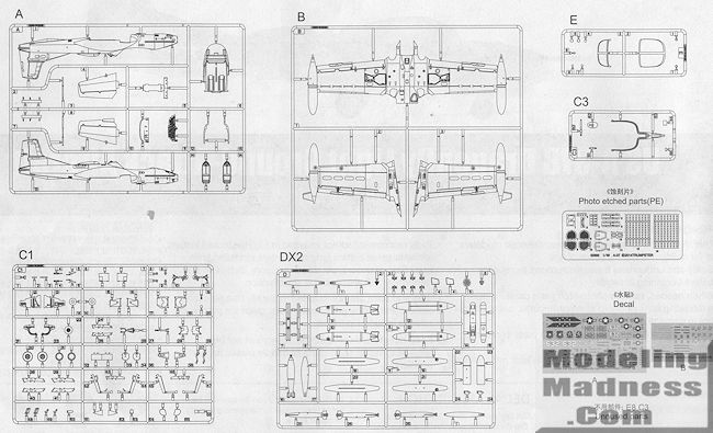 Trumpeter provides a nice cockpit with a pair of three-piece bang seats, separate rudder pedals, and a nice control stick. There are decals for the instrument panel, but you will not see the placement guide unless you look at the overall painting guide. This information needs to be in the section for assembling the cockpit. Fuselage halves are complete and trap the nose gear well and interior between them. You need nose weight, but typical of Trumpeter, you are not told how much. It will take a lot.