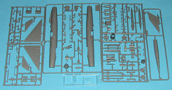 Molded in a nice neutral grey plastic with very nicely done engraved panel lines, the kit seems hauntingly similar in layout to the Fujimi version. Perhaps there are just a finite number of ways to mold a MiG-21 just as there are many other popular subjects. The four grey and one clear sprue contain the 90 parts needed to build one fully loaded MiG-21 Fishbed L. There is room for the usual nose wieght in the radome (though none is shown needed in the instructions. A fairly nice cockpit tube with seat, stick and instrument panel are provided. There is some raised detailing for the instruments. Nose and main gear wells are separate and installed along with the exhaust when one closes up the fuselage.