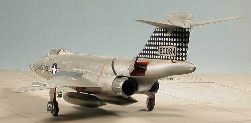This kit is easy to paint. A simple overall aluminum scheme with an olive drab anti-glare panel. The entire plane was painted with Testors Metallizer and then the OD section painted with Gunze acrylics. Afterburner sections were painted a darker metallic color and the nose with flat black.