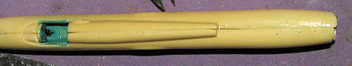 to install the intake radome prior to gluing the halves and there is a ring that fits in this place. This meant that the rear of the spine and the very aft section would need some sanding to match things. It also meant that panel lines would become more and more distant from each other as one went from nose to tail, but that is the price one pays sometimes. Of course, I could fill and rescribe all those lines, but I am far too lazy to do that. It also did not help that the sprue attachment point on one half was much thicker than on the other, requiring a lot of sanding on the upper half of one side, resulting in the expected gaps as I was unsuccessful in having things sand straight. However, super glue is an excellent filler and eventually that took care of those pesky gaps. I also had to deal with some air pockets. You can see several just beneath the surface near the rear on the image above.