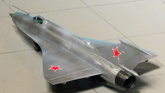 It was at this time that I finally added the decals. Just six Russian red stars on the fin and wings. The decals are very good and quite thin. No setting solution was required and it very much seems as if they have no carrier that extends beyond the decal itself. I used no clear coat over them. The masking was removed from the canopy, a bit of touch up painting was done (scoops, you know), and that was it.