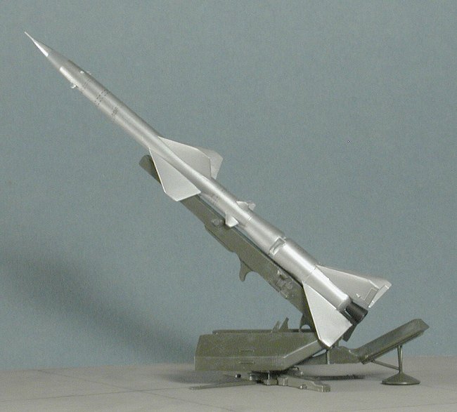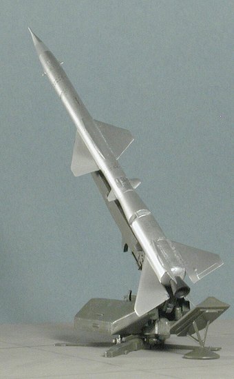 For some background info and a look at the kit in the box, please visit the preview. This is the third small scale SA-2 that I know of. The Airfix 1/76 scale kit is the oldest and includes the transporter, but this is one of the four 'lost and never to be found' Airfix molds as it has never been reissued. The other is the very nice, but a bit pricey $25 Planet Models resin kit. Like this one it is a missile and launcher, but unlike this one, the detail level is higher. Contest builders will probably want the Planet Models kit. The rest of us who want a pretty quick build with choose this one.